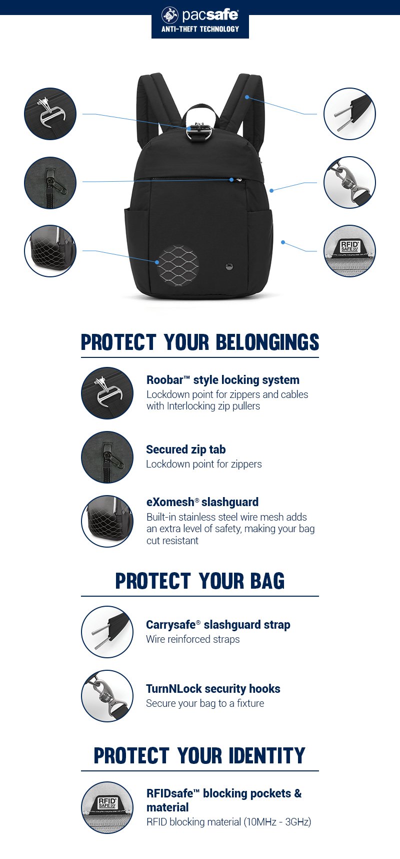 Wanted a small backpack that’s light and easy to carry for leisure and looks good for daytime or evening adventures and still has all the security features - Pacsafe you have got this spot on!