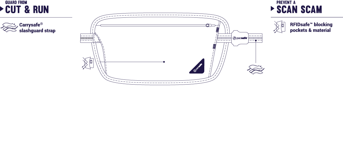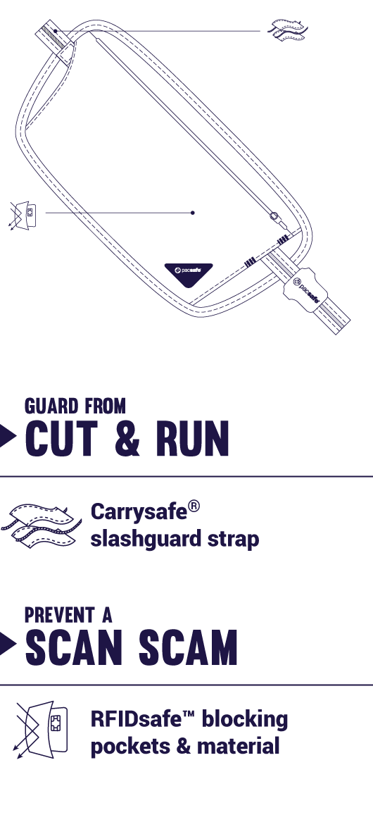 Secure your passport, cash and cards in this handy waist wallet that rests comfortably beneath your clothes. The slash-resistant strap adds extra security, while RFIDsafe™ blocking material shields your personal details against unwanted scans.