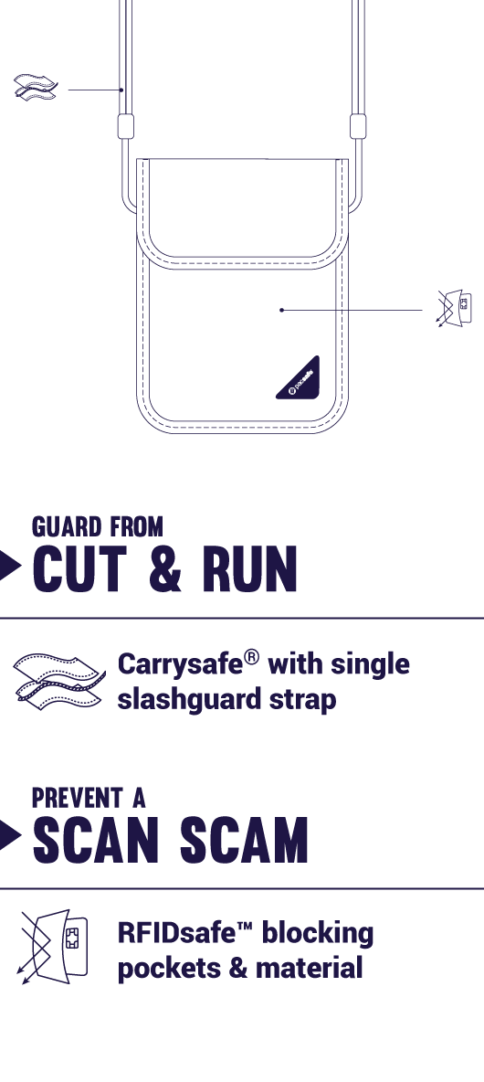 Secure your cash and cards in this handy little pouch that hangs discreetly around your neck. The slash-resistant strap adds extra security, while RFIDsafe™ blocking material shields your credit cards against unwanted scans.