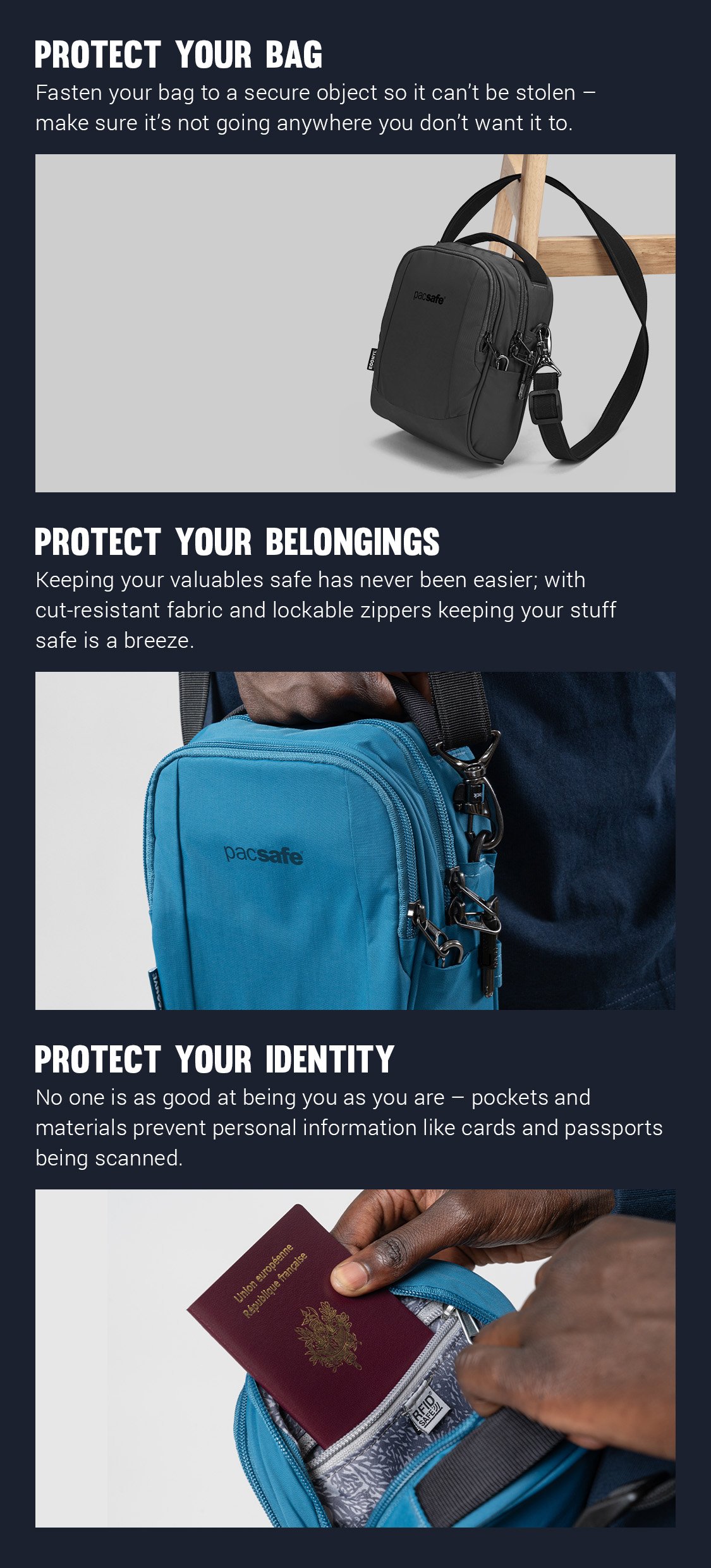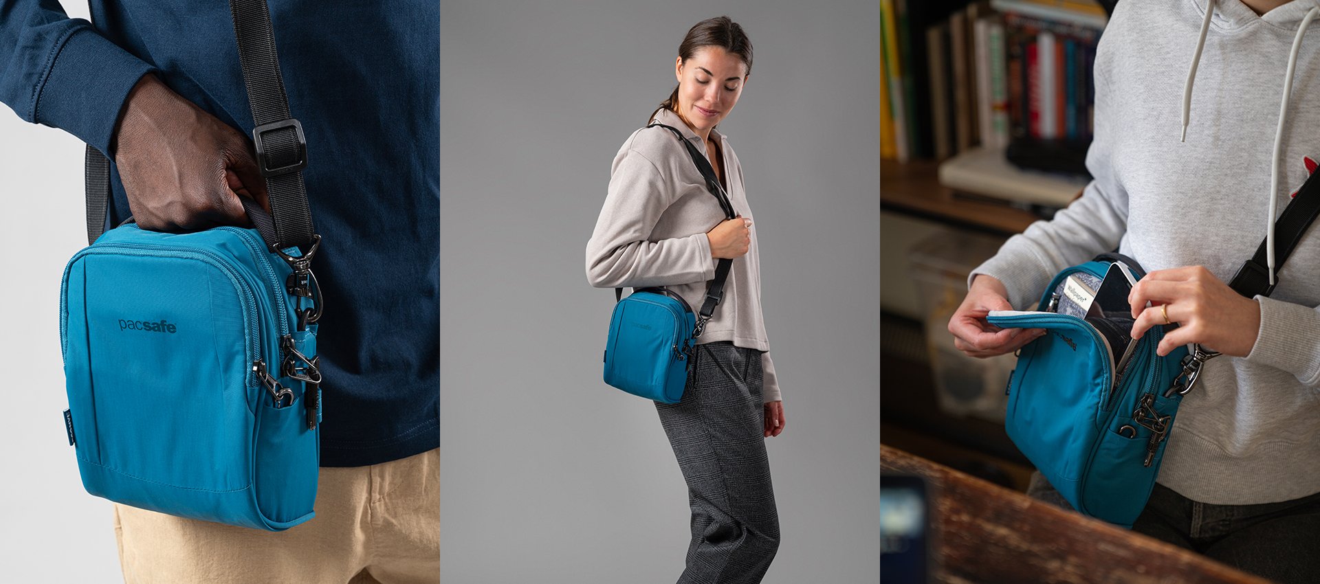 It's the perfect size. I get my 10" ipad and Sony headphones in with room to spare for a charger and cable, money, pens, etc. The back pocket is perfect for trip itinerary papers and/or hand wipes. Wish List: outside pocket for id card in case bag is lost. Even an inside pocket would help. Cheap functional items.