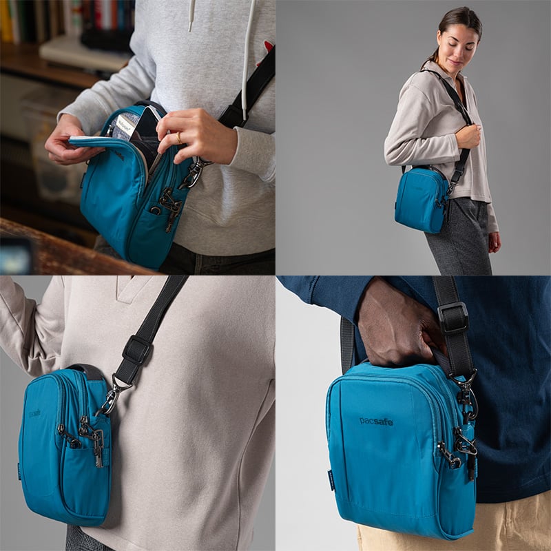 It's the perfect size. I get my 10" ipad and Sony headphones in with room to spare for a charger and cable, money, pens, etc. The back pocket is perfect for trip itinerary papers and/or hand wipes. Wish List: outside pocket for id card in case bag is lost. Even an inside pocket would help. Cheap functional items.