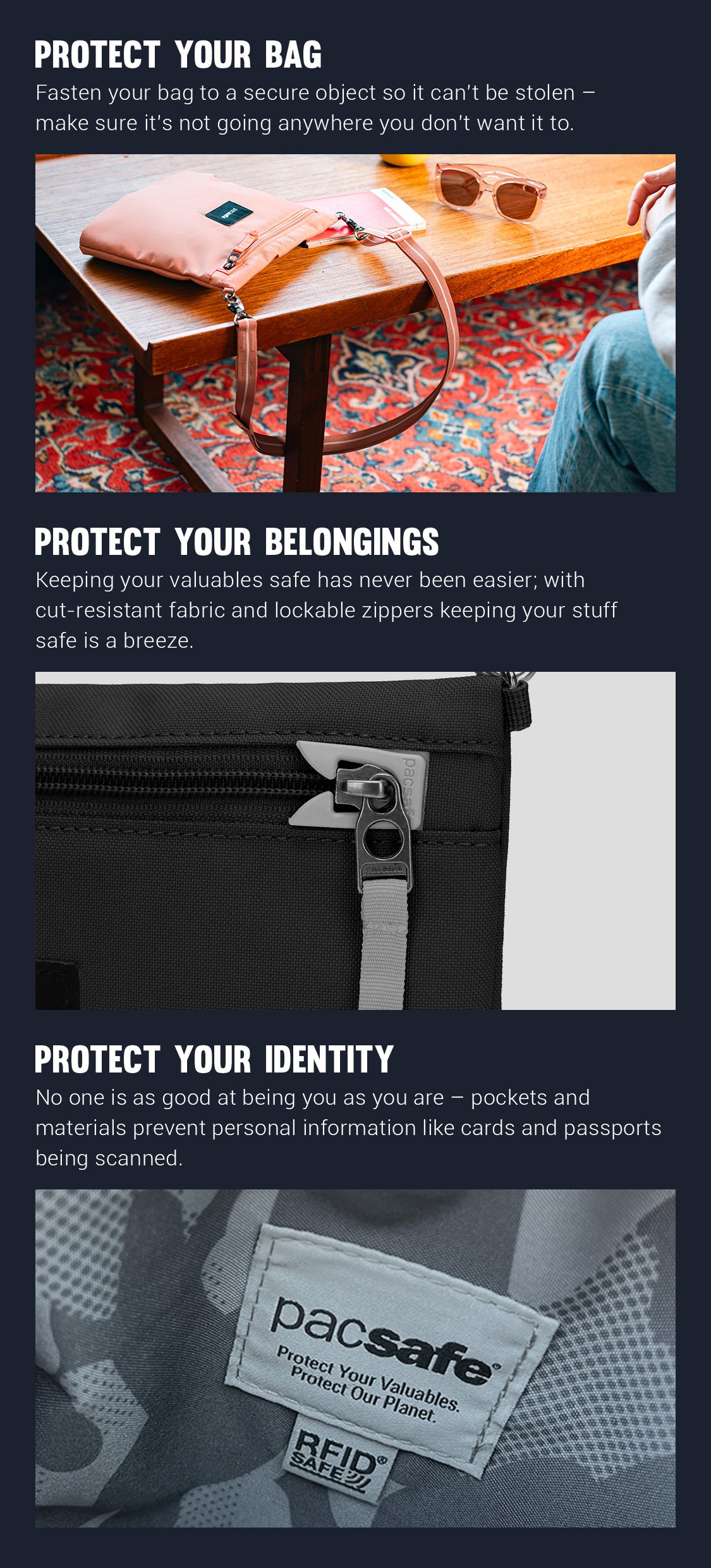 This versatile crossbody bag can convert into a travel pouch by simply removing the strap. Use it as a storage pouch for your gadgets, cables, and accessories, or switch it up into a crossbody bag for your essentials when you reach your travel destination. Our GO collection unlocks adventure and possibility with anti-theft security and effortless function.