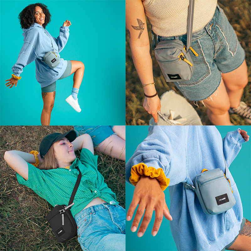 For those moments you prefer going hands-free with just the essentials, this micro-size crossbody will fit just that. This compact crossbody has two perfectly sized compartments that will fit your phone, wallet, keys, sunglasses, and AirPods. It's all secured with easy lockable zippers, an RFID-blocking pocket, and a cut-resistant strap to help protect your valuables while you're on-the-go.