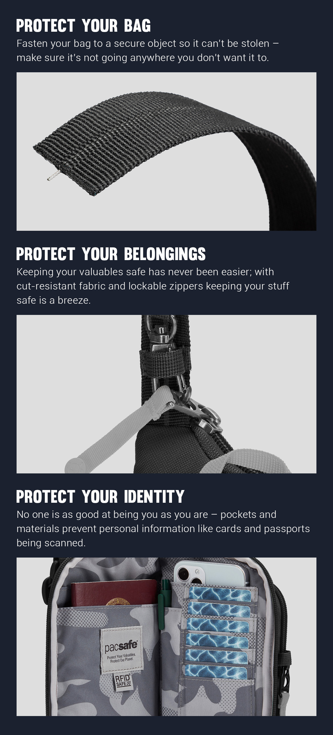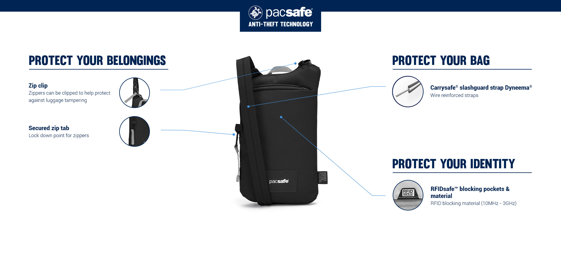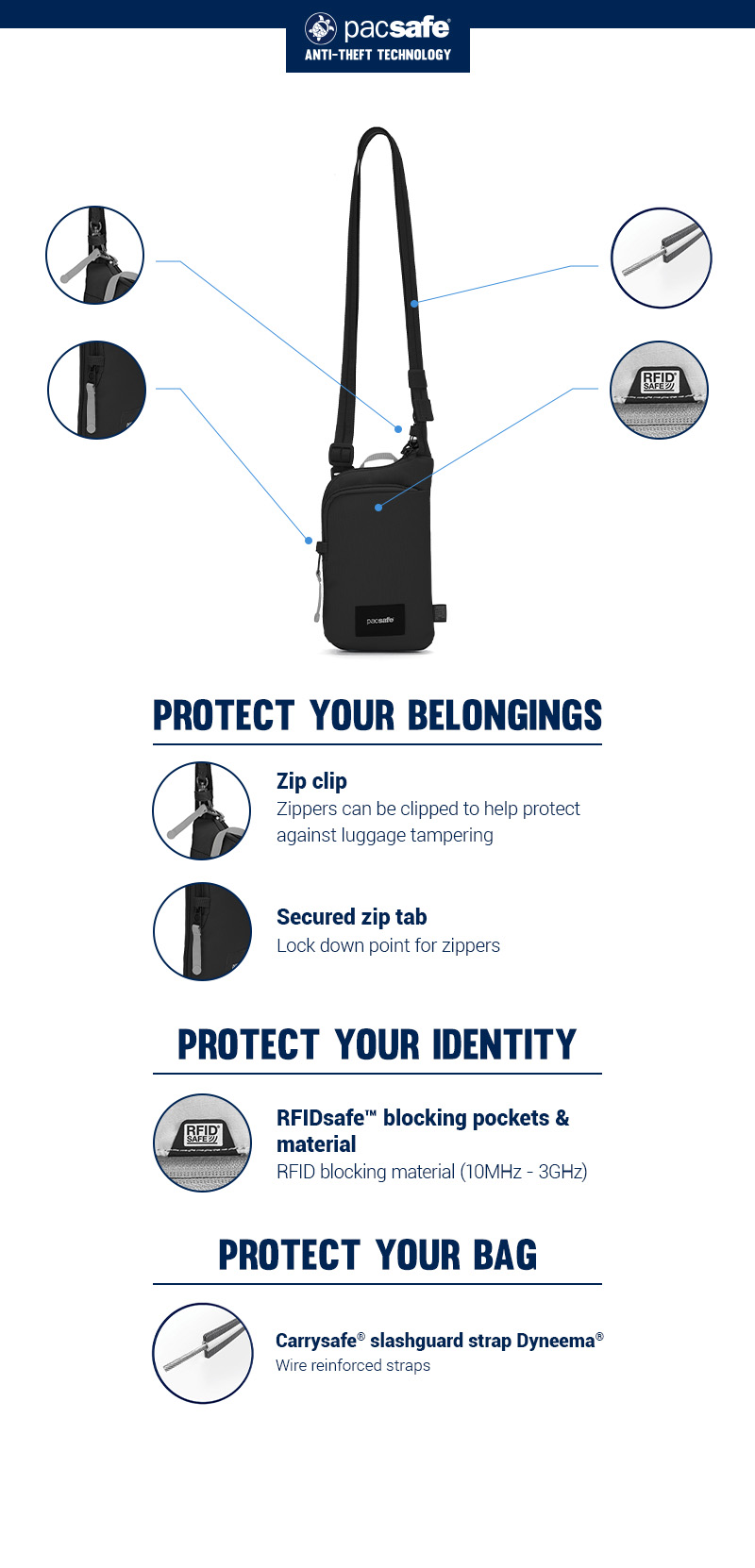 Pacsafe® GO anti-theft tech crossbody